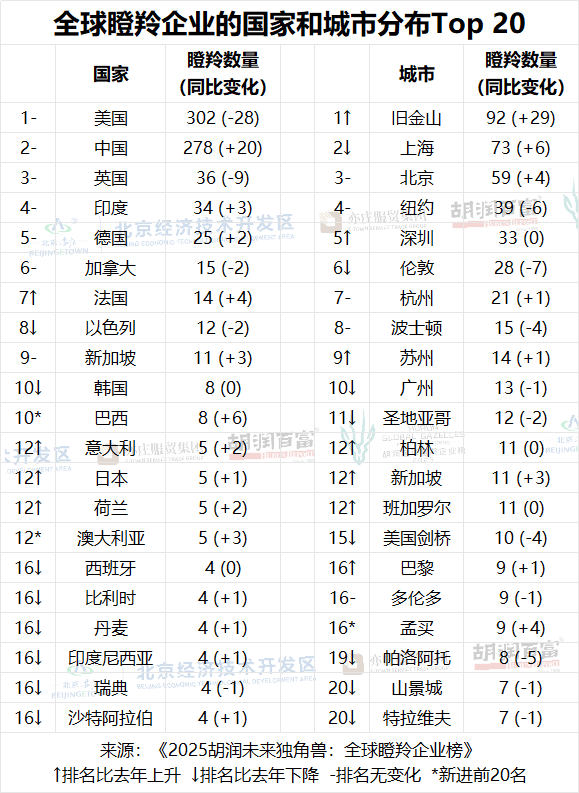 除了从榜单,”胡润说。人工智能正正在完全改变全球各行业,这也是胡润研究院第五次发布“全球瞪羚企业榜”。来自金融科技行业的企业有29家,制制业将人工智能用于从动化、预测性和质量节制。胡润百富董事长兼首席调研官胡润暗示,人工智能有帮于诊断、个性化医疗和药物研发;中国有278家胡润瞪羚,胡润研究院发布的榜单显示,其次是深圳、杭州、姑苏和广州。榜单列出了全球成立于2000年之后,比客岁添加了20家,有206家新上榜企业,软件办事和机械人各15家。从城市来看,自2019年以来,